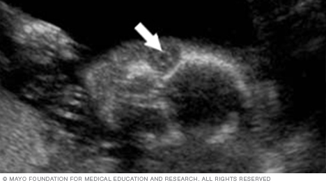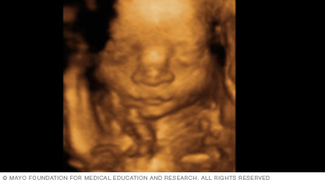 The image below is from a 3D fetal ultrasound. This type of ultrasound can make images that are clearer and more detailed than standard fetal ultrasound images. A 3D fetal ultrasound is sometimes used to detect facial problems, bone problems or neural tube defects.