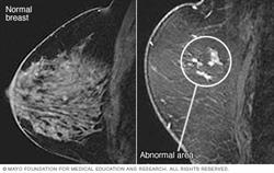 A breast MRI might be done after a biopsy shows cancer. Breast MRI can show the extent of the cancer or an issue with the other breast.