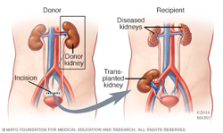 Living-donor kidney transplant is an alternative to deceased-donor kidney transplant. A living donor can donate one of his or her two kidneys, and the remaining kidney is able to perform the necessary functions.