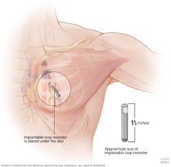An implantable loop recorder is placed under the skin on the chest. The minor surgery is usually done in a medical office or medical center.