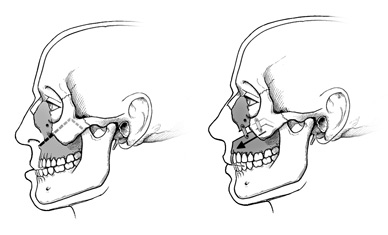 Your surgeon cuts the bone above your teeth so that the whole top jaw, including the roof of your mouth and your upper teeth, can move as one unit. Your surgeon moves the jaw and upper teeth forward, backward, up or down until they fit properly with the lower teeth. In some cases, the surgeon can widen a narrow upper jaw during this surgery by making additional cuts through the roof of the mouth from the nose side of the upper jaw.