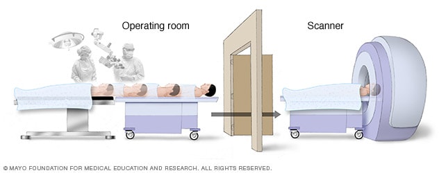 Your neurosurgeon may take imaging scans during surgery, known as intraoperative MRI or CT using a portable CT scanner. The imaging machine used to take the images may be in the operating room and brought to you for the imaging. Or it may be in a room next door and you're brought to the machine for the images.