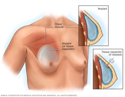 During top surgery, the surgeon places the implants under the breast tissue. If feminizing hormones haven't made the breasts large enough, an initial surgery might be needed to have devices called tissue expanders placed in front of the chest muscles.