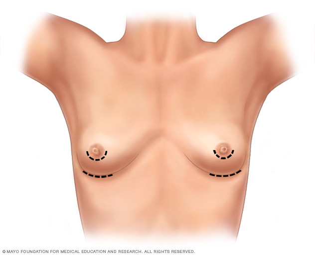 During this surgery, a surgeon makes cuts around the areola, near the armpit or in the crease under the breast. Next, silicone or saline implants are placed under the breast tissue. Another option is to transplant fat, muscles or tissue from other parts of the body into the breasts.