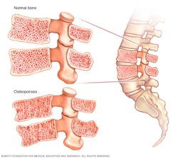 With bone loss, the outer shell of a bone becomes thinner and the interior becomes more porous. Normal bone is strong and flexible. Osteoporotic bone is weaker and subject to fracture.