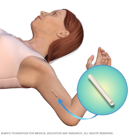 The contraceptive implant is placed under the skin of the upper arm. You won't be able to see the implant. But you may be able to feel the implant underneath the skin if you touch that spot on your arm.
