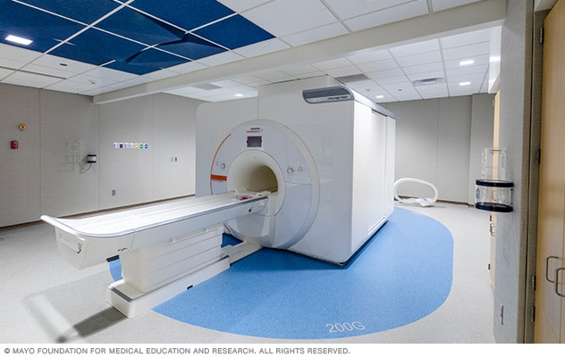 - Wide-bore MRI machine. This MRI machine has a wider center opening than that of the traditional MRI. A magnet still surrounds you on all sides, but there is more room inside. These machines may be more comfortable for someone who has a larger body size or who is afraid of enclosed spaces.